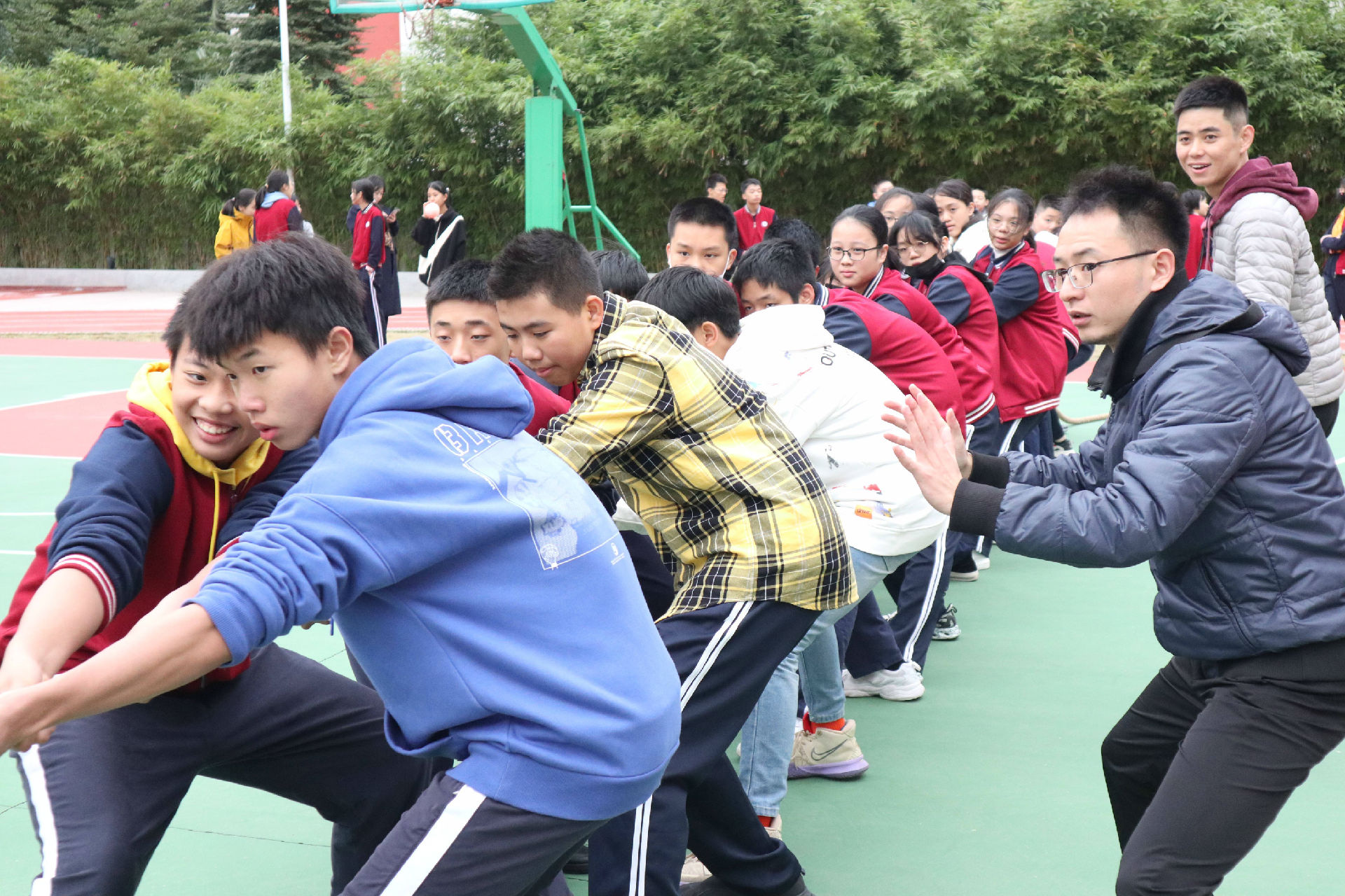 丹青浑滋气象新,翰墨飘香谱华章。光阴更迭,岁月流金,转眼间,2020年即将画上圆满的句号,2021年的钟声马上敲响,时光的年轮又留下深深的一道印痕。为了迎接新年的到来,寰岛中学举办了“迎新杯” 拔河比赛和班级联欢会, 伴随着冬日温暖的阳光,怀着喜悦的心情,同学们的欢声笑语充满了整个校园。