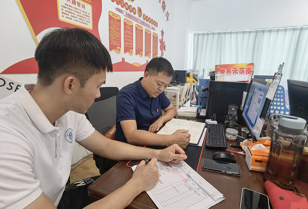 二、党员刘钝页(德育主任)与德育干事积极探讨如何做好学生安全管理和落实学生成长积分管理办法。
