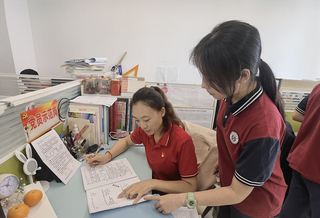 三、月考后,党员教师姜鸿竹主动利用业余时间为成绩较差的学生进行辅导。