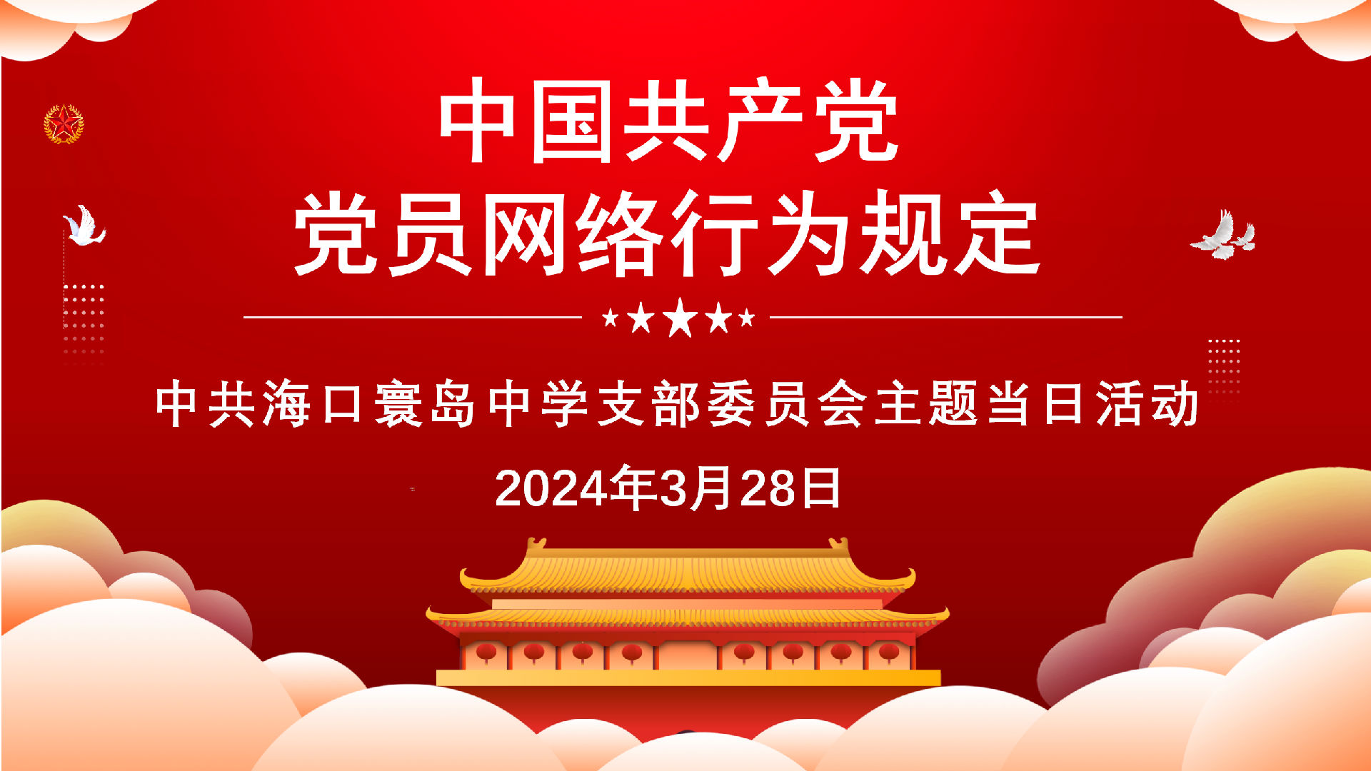 3月28日上午,海口寰岛中学党支部组织全体党员干部集中学习《中国共产党党员网络行为规定》(以下简称《规定》)。