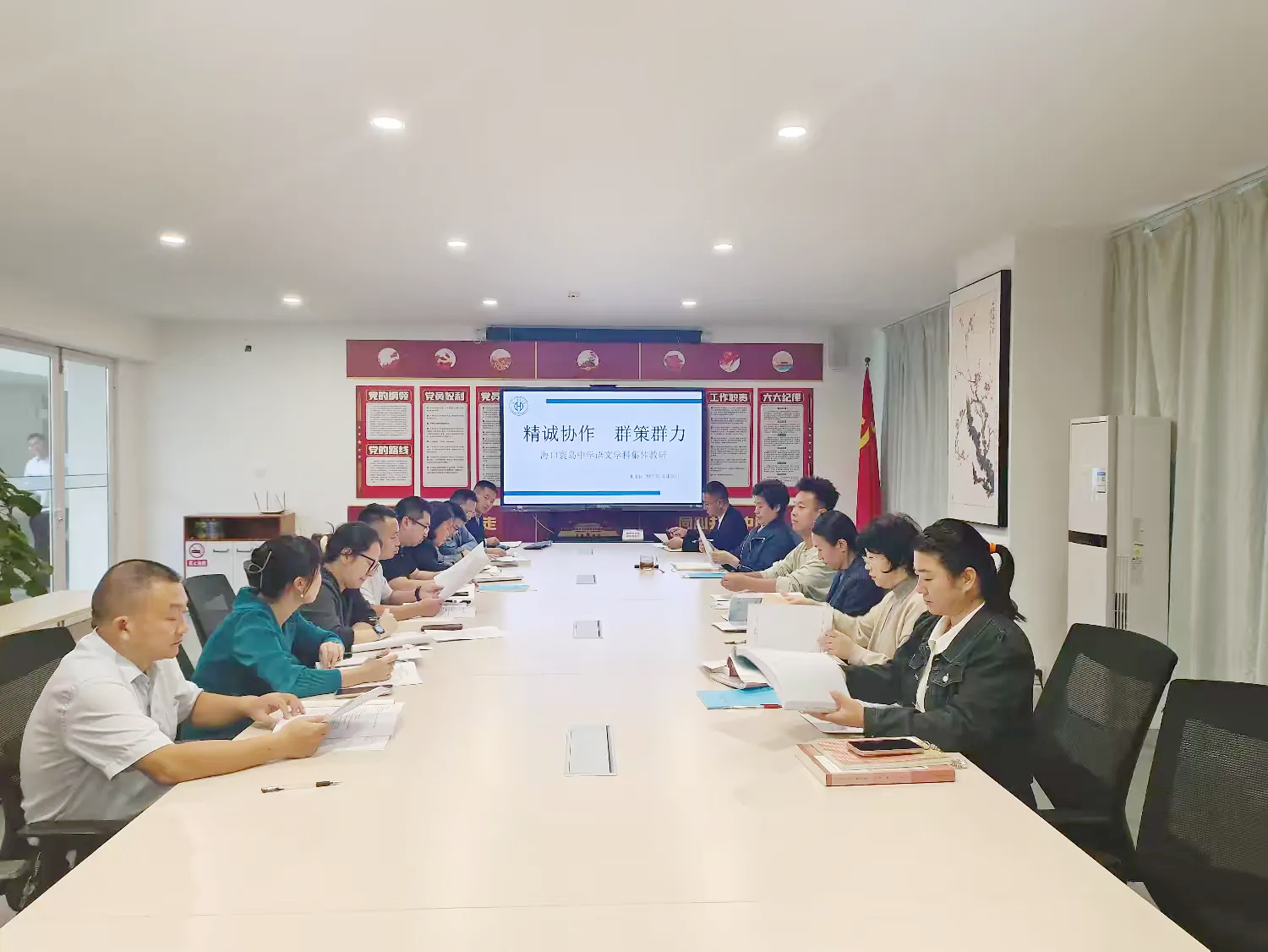 2025 年10月28日上午,海口寰岛中学七八九年级语文学科老师集体教研,张校长、周副校长与全体语文组教师齐聚一堂,带着 “深耕教学” 的热忱,怀着 “共促提升” 的初心,围绕2025年中考学科分析与日常教研教学展开深入研讨。
