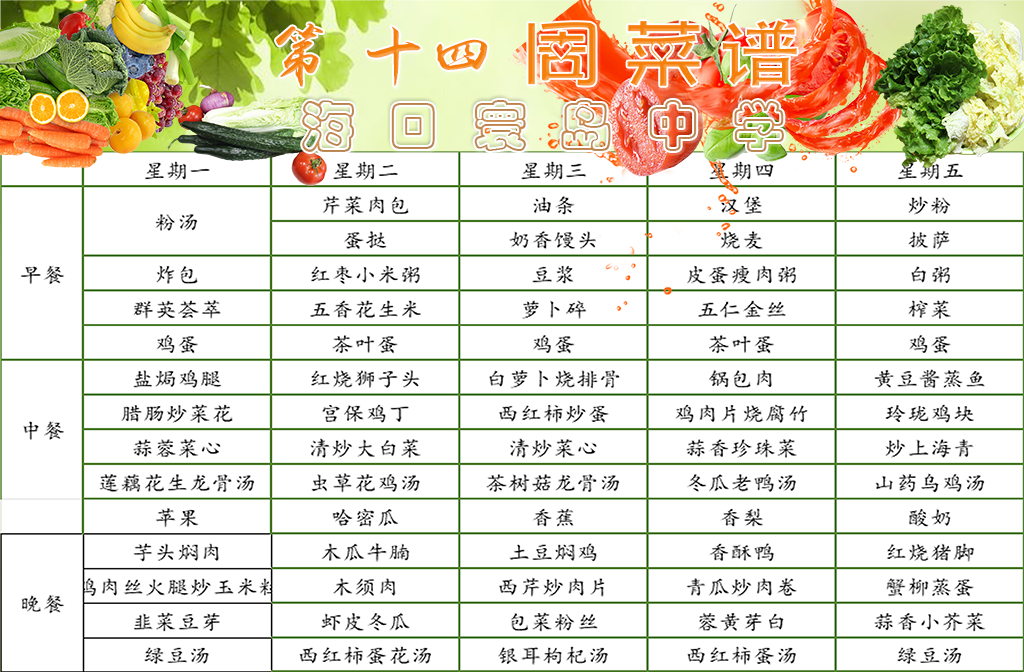 2025-2026学年第一学期第十四周海口寰岛中学师生食谱