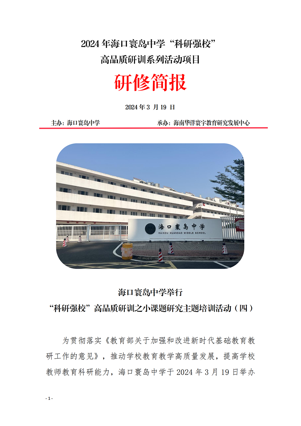 海口寰岛中学举行 “科研强校”高品质研训之小课题研究主题培训活动(四)