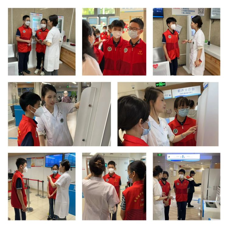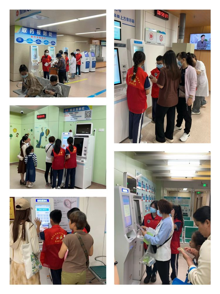实践活动中寰岛学子们担当起医院志愿者,指导患者智慧就医,协助缴费、协助诊疗相关自助项目;提供门诊引导、道路方向指引服务,引导有需要的患者到达诊疗区域;提供各楼层自助机打印使用操作指导;为老弱、残、孕等患者提供帮助;帮助特殊患者和无陪同家属患者完善就医信息,窗口取药,取检查结。在为患者服务的过程中,孩子们也学会使用智慧医疗和自助机等人工智能,增强了与人交流、沟通、合作的技巧,锻炼了孩子们的自信心和勇气。