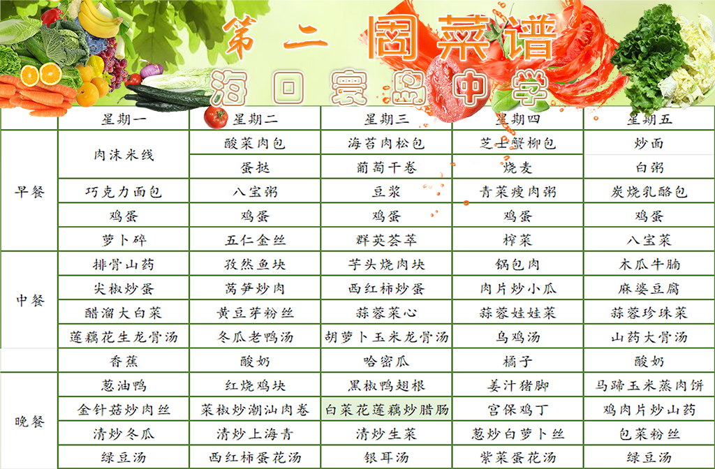 2025-2026学年第二学期第二周海口寰岛中学师生食谱