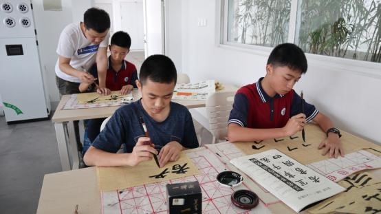 海口寰岛中学书法社团活动照片